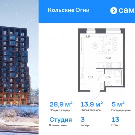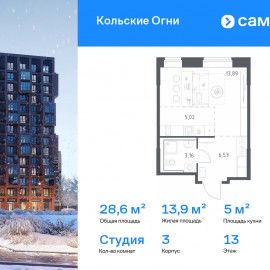 Строим кварталы для жизни с заботой о будущем. Предлагается квартира студия комфорт-класса 28, 6 кв.м в корпусе 3 на 13 этаже, в ЖК «Кольские Огни» Квартира без отделки. Доступность опции «отделка» и возможность комплектации мебелью и декором уточняйте у...