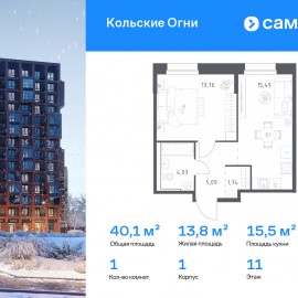 Строим кварталы для жизни с заботой о будущем. Предлагается 1-комнатная квартира комфорт-класса 40, 11 кв.м в корпусе 1 на 11 этаже, в ЖК «Кольские Огни» Квартира без отделки. Доступность опции «отделка» и возможность комплектации мебелью и декором уточняйте у...