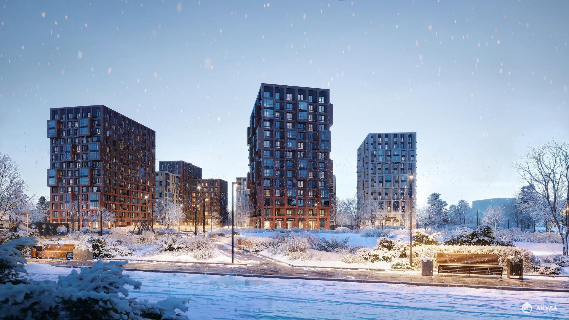 Корпуса высотой 9–12 этажей и 14–17-этажные башни украшают деревянные панели. На входе в подъезды не будет ступеней и высоких порогов. После прогулки велосипеды и коляски можно оставить в местах хранения.