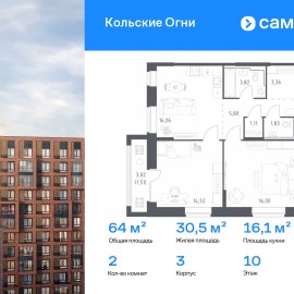 Строим кварталы для жизни с заботой о будущем. Предлагается 2-комнатная квартира комфорт-класса 64, 41 кв.м в корпусе 1 на 13 этаже, в ЖК «Кольские Огни» Квартира без отделки. Доступность опции «отделка» и возможность комплектации мебелью и декором уточняйте у...