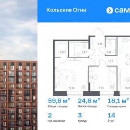 Строим кварталы для жизни с заботой о будущем. Предлагается 2-комнатная квартира комфорт-класса 59, 64 кв.м в корпусе 3 на 14 этаже, в ЖК «Кольские Огни» Квартира без отделки. Доступность опции «отделка» и возможность комплектации мебелью и декором уточняйте у...