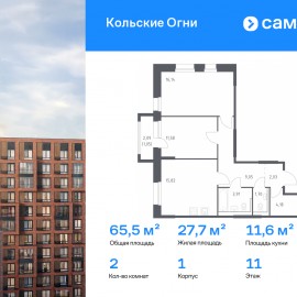 Строим кварталы для жизни с заботой о будущем. Предлагается 2-комнатная квартира комфорт-класса 65, 46 кв.м в корпусе 1 на 11 этаже, в ЖК «Кольские Огни» Квартира без отделки. Доступность опции «отделка» и возможность комплектации мебелью и декором уточняйте у...