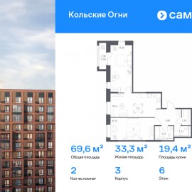 Строим кварталы для жизни с заботой о будущем. Предлагается 2-комнатная квартира комфорт-класса 69, 56 кв.м в корпусе 3 на 6 этаже, в ЖК «Кольские Огни» Квартира без отделки. Доступность опции «отделка» и возможность комплектации мебелью и декором уточняйте у...