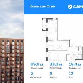 Строим кварталы для жизни с заботой о будущем. Предлагается 2-комнатная квартира комфорт-класса 69, 56 кв.м в корпусе 3 на 13 этаже, в ЖК «Кольские Огни» Квартира без отделки. Доступность опции «отделка» и возможность комплектации мебелью и декором уточняйте у...