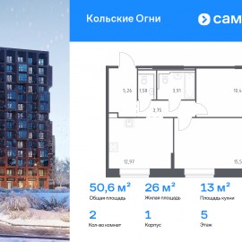 Строим кварталы для жизни с заботой о будущем. Предлагается 2-комнатная квартира комфорт-класса 51, 76 кв.м в корпусе 1 на 11 этаже, в ЖК «Кольские Огни» Квартира без отделки. Доступность опции «отделка» и возможность комплектации мебелью и декором уточняйте у...