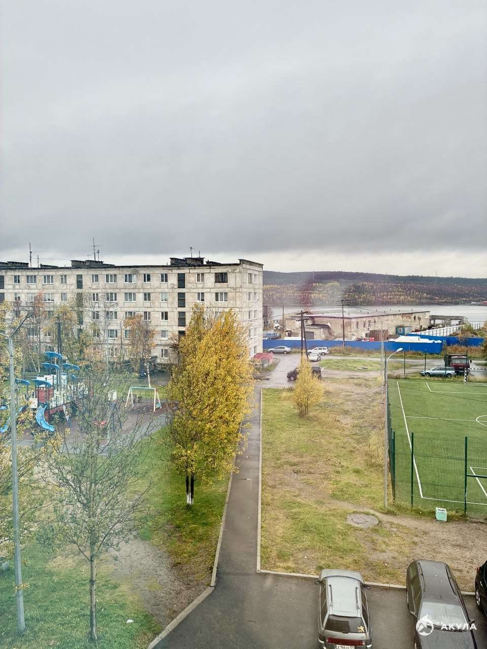 Дом находится у берега, с видом на Кольский залив. Во дворе дома установлены: новая большая современная детская площадка, а так же спортивная площадка для взрослых.