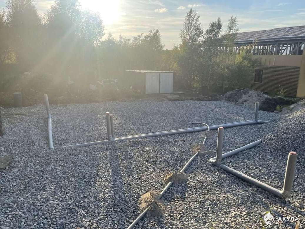9) организована яма под септик, туда подведена канализация. Яма засыпана песком в целях безопасности и простоты будущего монтажа