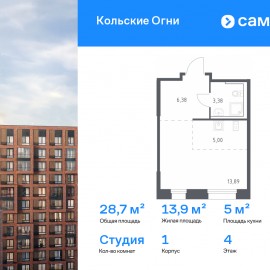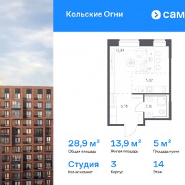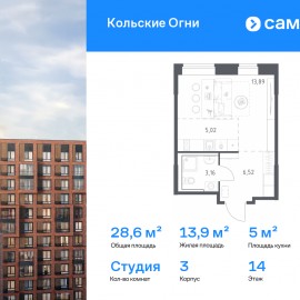 Строим кварталы для жизни с заботой о будущем. Предлагается квартира студия комфорт-класса 28, 59 кв.м в корпусе 3 на 14 этаже, в ЖК «Кольские Огни» Квартира без отделки. Доступность опции «отделка» и возможность комплектации мебелью и декором уточняйте у...