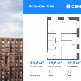 Строим кварталы для жизни с заботой о будущем. Предлагается 1-комнатная квартира комфорт-класса 46, 63 кв.м в корпусе 1 на 12 этаже, в ЖК «Кольские Огни» Квартира без отделки. Доступность опции «отделка» и возможность комплектации мебелью и декором уточняйте у...