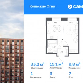Строим кварталы для жизни с заботой о будущем. Предлагается 1-комнатная квартира комфорт-класса 33, 23 кв.м в корпусе 3 на 7 этаже, в ЖК «Кольские Огни» Квартира без отделки. Доступность опции «отделка» и возможность комплектации мебелью и декором уточняйте у...