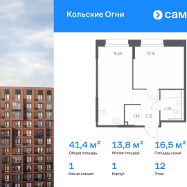 Строим кварталы для жизни с заботой о будущем. Предлагается 1-комнатная квартира комфорт-класса 41, 41 кв.м в корпусе 1 на 12 этаже, в ЖК «Кольские Огни» Квартира без отделки. Доступность опции «отделка» и возможность комплектации мебелью и декором уточняйте у...