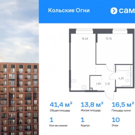 Строим кварталы для жизни с заботой о будущем. Предлагается 1-комнатная квартира комфорт-класса 41, 41 кв.м в корпусе 1 на 10 этаже, в ЖК «Кольские Огни» Квартира без отделки. Доступность опции «отделка» и возможность комплектации мебелью и декором уточняйте у...