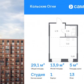 Строим кварталы для жизни с заботой о будущем. Предлагается квартира студия комфорт-класса 29, 05 кв.м в корпусе 1 на 13 этаже, в ЖК «Кольские Огни» Квартира без отделки. Доступность опции «отделка» и возможность комплектации мебелью и декором уточняйте у...