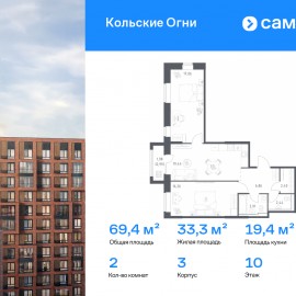 Строим кварталы для жизни с заботой о будущем. Предлагается 2-комнатная квартира комфорт-класса 69, 36 кв.м в корпусе 3 на 10 этаже, в ЖК «Кольские Огни» Квартира без отделки. Доступность опции «отделка» и возможность комплектации мебелью и декором уточняйте у...