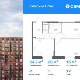 Строим кварталы для жизни с заботой о будущем. Предлагается 2-комнатная квартира комфорт-класса 54, 65 кв.м в корпусе 1 на 12 этаже, в ЖК «Кольские Огни» Квартира без отделки. Доступность опции «отделка» и возможность комплектации мебелью и декором уточняйте у...