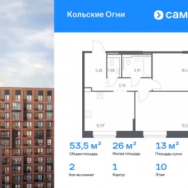 Строим кварталы для жизни с заботой о будущем. Предлагается 2-комнатная квартира комфорт-класса 53, 5 кв.м в корпусе 1 на 10 этаже, в ЖК «Кольские Огни» Квартира без отделки. Доступность опции «отделка» и возможность комплектации мебелью и декором уточняйте у...