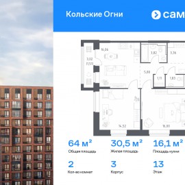 Строим кварталы для жизни с заботой о будущем. Предлагается 2-комнатная квартира комфорт-класса 64, 41 кв.м в корпусе 1 на 13 этаже, в ЖК «Кольские Огни» Квартира без отделки. Доступность опции «отделка» и возможность комплектации мебелью и декором уточняйте у...