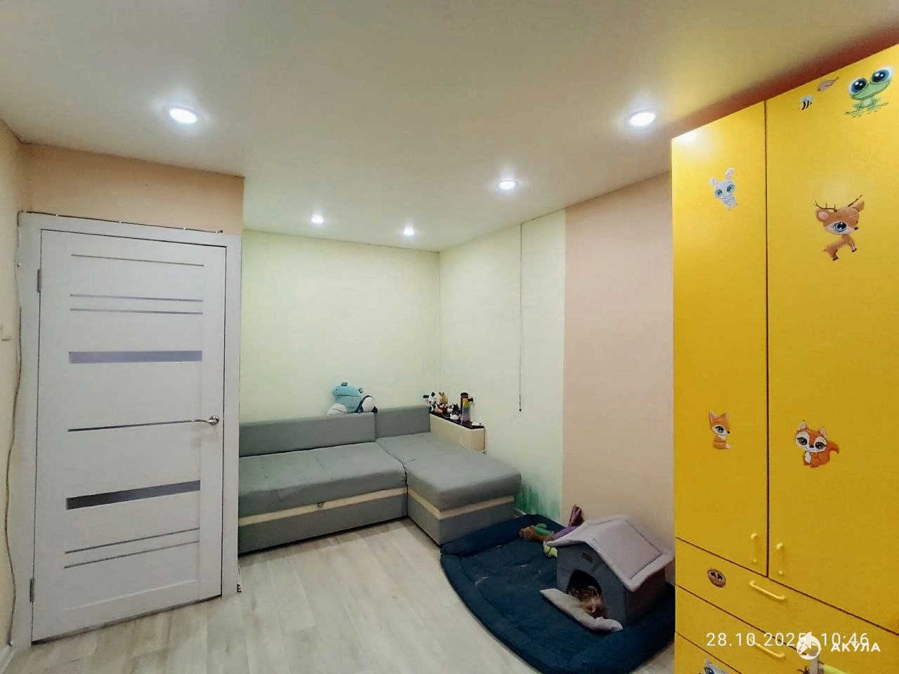 Сделан свежий косметический ремонт-обои под покраску в нежных тонах, натяжной потолок визуально расширяет пространство.