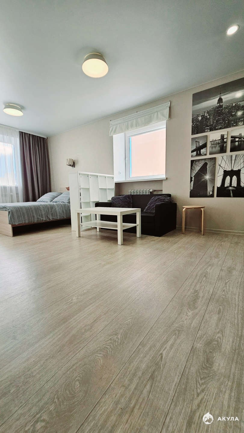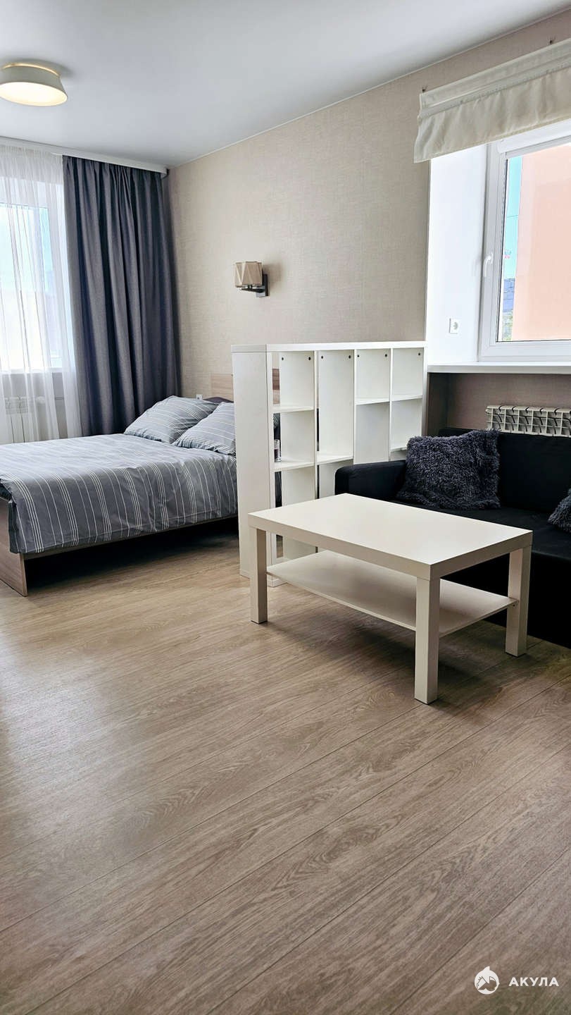 -Просторная комната с двумя окнами на разные стороны на разные стороны.
